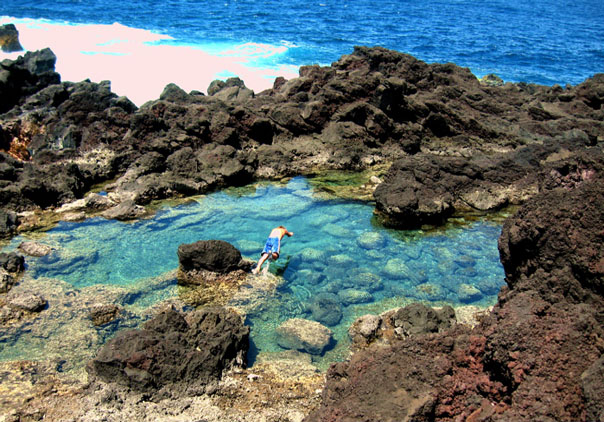 springs along the coast that are filled half with spring water and half