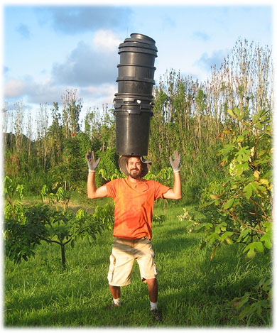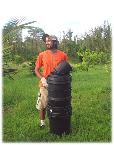 The shade cloth nursery includes scores of plastic pots from tiny seedling size to 15 gallon mature tree pots. There are a variety of organic soil amendments including bat guano, bone meal, spirulina, fish emulsion, mineral supplements and natural pest control items like neem oil and bacillus thunbergensis. There is a large compost pile that provides rich new soil for the garden beds. There is a small library of books about tropical farming. We are happy to share of knowledge of organic farming and tropical agriculture with whomever buys the farm, and will remain available to answer your questions as they arise while you transition into your new life.